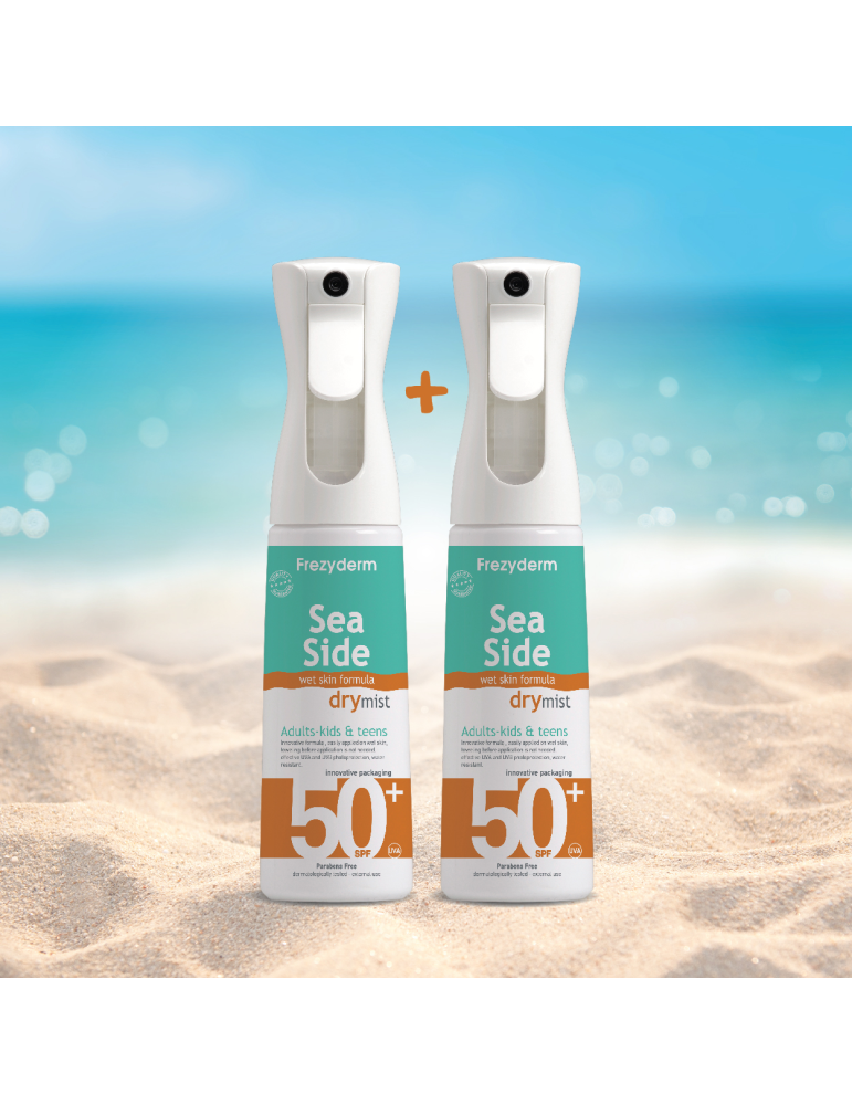 Frezyderm Sea Side Dry Mist All Over Sunscreen SPF 50+: Αντηλιακό dry oil σε μορφή mist που προσφέρει πολύ υψηλή προστασία.