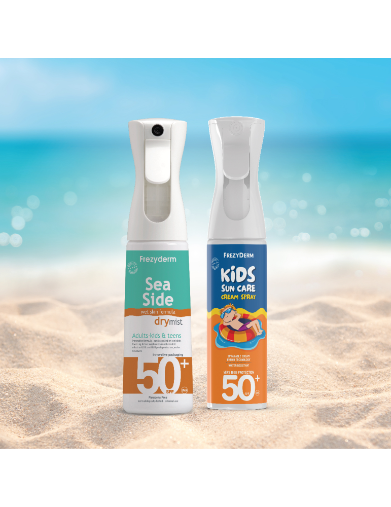 Frezyderm Sea Side Dry Mist All Over Sunscreen SPF 50+: Αντηλιακό dry oil σε μορφή mist που προσφέρει πολύ υψηλή προστασία.