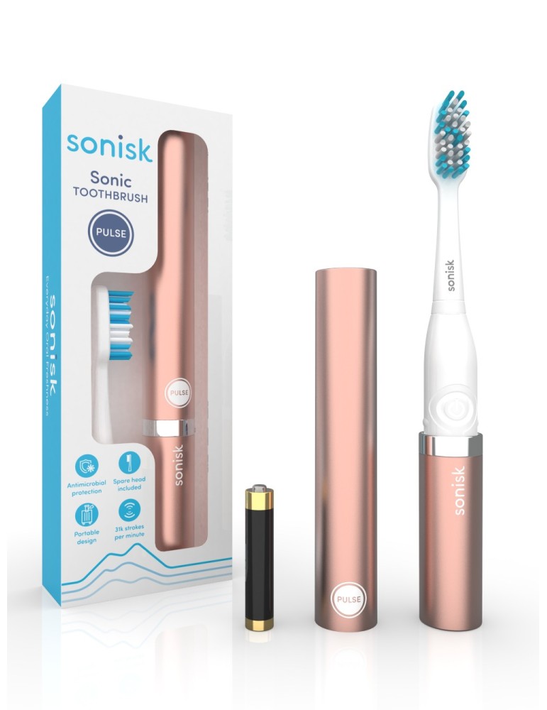 SONISK PULSE T/Br Rose Gold: Φορητή οδοντόβουρτσα Sonic με αντιβακτηριακές / αντιμικροβιακές ίνες για καθαρά δόντια και υγιή ούλα. 31.000 στροφές ανά λεπτό για βαθύ καθαρισμό!