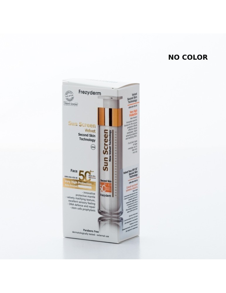 Frezyderm Sun Screen Color Velvet Face Cream SPF50+, 50ml: Έγχρωμο, διάφανο αντηλιακό προσώπου για πολύ υψηλή προστασία, με βελούδινη υφή και ματ αποτέλεσμα.
