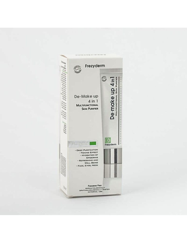 Frezyderm De-Make Up 4 in 1, 200ml: Γαλάκτωμα καθαρισμού, 4 σε 1. Για πρόσωπο, λαιμό και μάτια. Κατάλληλο και για αδιάβροχο μακιγιάζ.