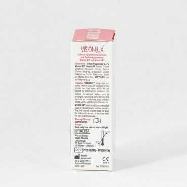 VISIONLUX Eye Drops 10ml: Lubricating ophthalmic solution with Hyaluronic acid, Vitamin B12, Vitamin B5 and essential electrolytes.