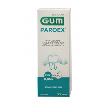 GUM Mouthwash Paroex Chx 0.06%, 500ml 1702: Daily Prevention Rinse, 0.06% CHX + 0.05% CPC. Good oral hygiene is the best prevention against gingivitis and plaque built up.